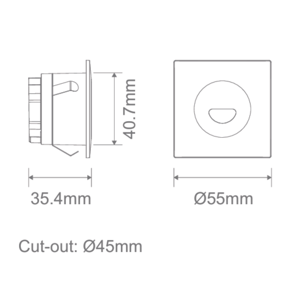 Domus CAMINO-SQR-ASY - 3W LED Tri-Colour Dimmable Square Recessed Steplight 240V IP54