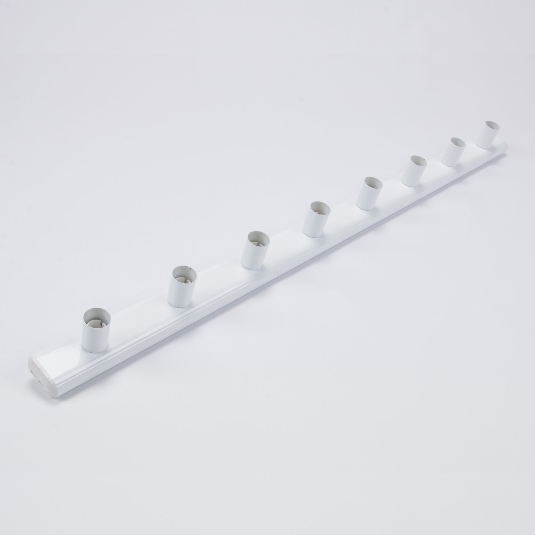 8 lamp Vanity light available in Black, Chrome, Satin Chrome and White. It requires 8xB15 lamps (not included), Domus recommends the Fancy Round frosted or clear in warm white or white.