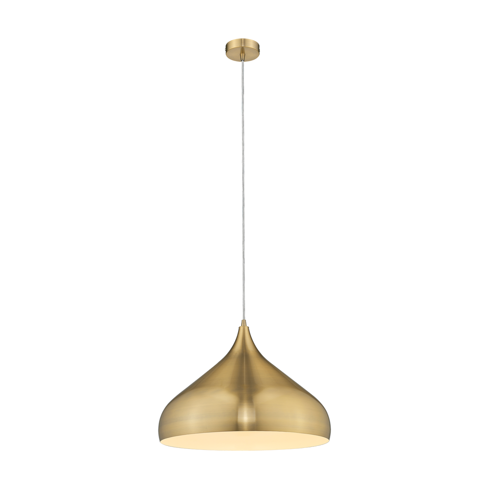 Nova metal pendant series offers a contemporary minimalist feel, suitable for hallways, breakfast bench, bedrooms, living rooms, as well as cafes and bars. Available with matching suspension, ceiling canopy, and choice of Brushed Brass and Satin White shades.